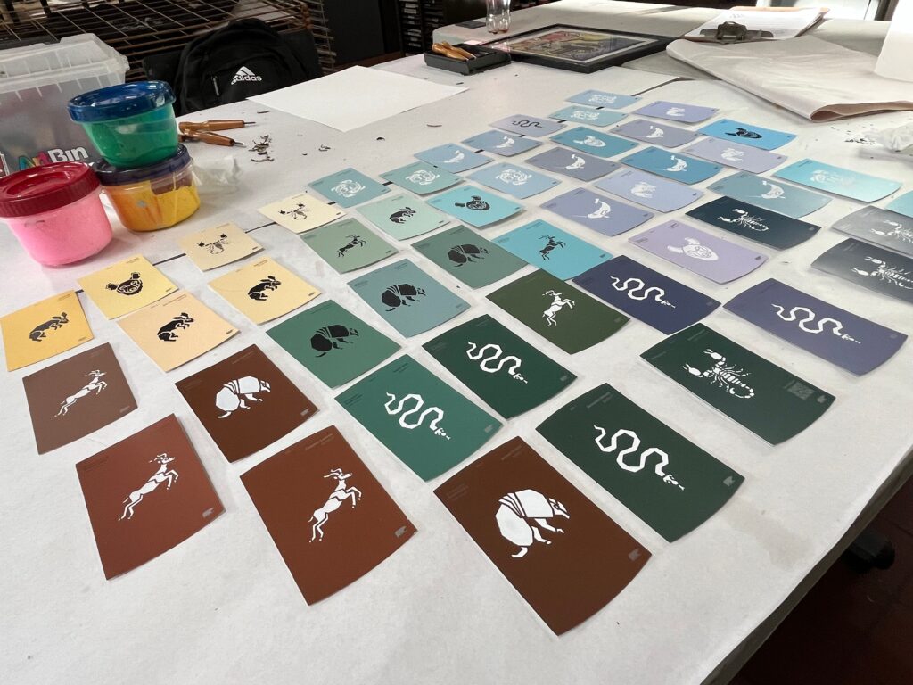 Joelle Cook (she/her) is an artist and writer based primarily on the West Coast. A military kid who grew up in different places, Joelle graduated from the University of Washington with a BA in Interdisciplinary Visual Arts and Creative Writing. She works primarily in printmaking and drawing, creating animal-based geometric designs. Her art is an exploration of the biological world and the architecture of manmade forms, and how that lends to a new kind of worldbuilding. Outside of her art and writing, she likes playing Dungeons and Dragons, making tea, and exploring the world with friends and family.